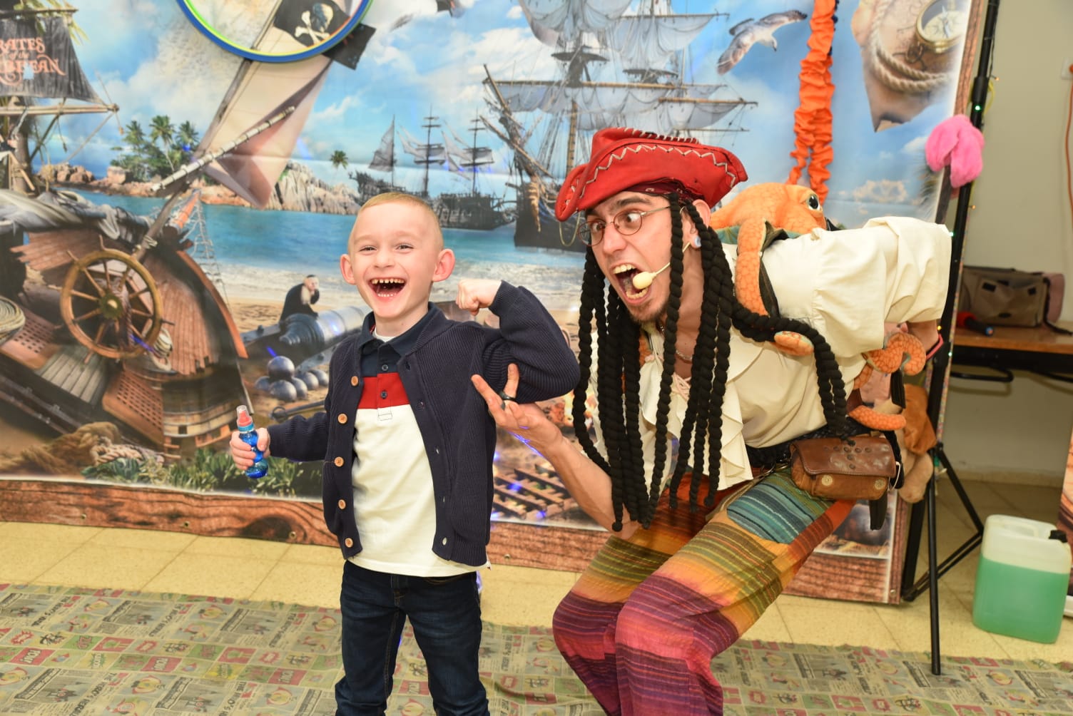 מסע פיראטים - בתוכנית כולם יחפשו אוצר עם המתנות. התגברות על מכשולים (רשת דייגים ואביזרים רבים אחרים). משחקים, תחרויות, טקס העוגה ומתנה לכל ילד!